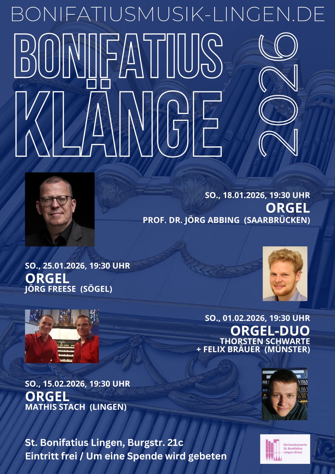 Sonntag, 15. Februar, 19:30 Uhr BONIFATIUSKLÄNGE 4 - Orgelkonzert